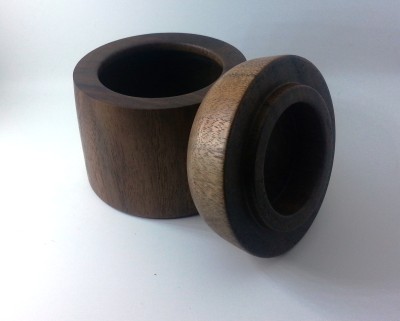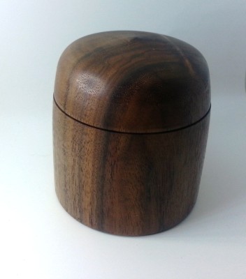 This cute little lidded container is perfect for a display case or vanity. Turned from a stunning piece of mahogany with lovely contrasting grains, this piece has a nicely fit lid and thick and strong walls.